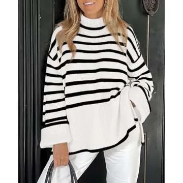 The striped pattern is not just a design choice; it transforms this simple sweater into a stylish statement piece, ideal for any occasion. Pair it with your favorite leggings or jeans to create a chic ensemble perfect for outings or lounging at home. The ribbed cuffs and hem lend a refined finish to this oversized jumper, making it a must-have in your wardrobe.