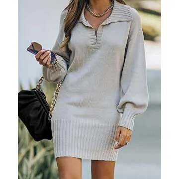 Unlike many competitors, the BTFBM Women Casual Sweater Dress offers a superior **combination of warmth and style**. Many brands focus solely on trendy designs without catering to comfort; however, this sweater dress successfully merges both attributes. The thoughtful addition of **lantern sleeves** and a **foldover collar** sets it apart from other basic sweater dresses, making it not just a piece of clothing but a statement of fashion versatility.