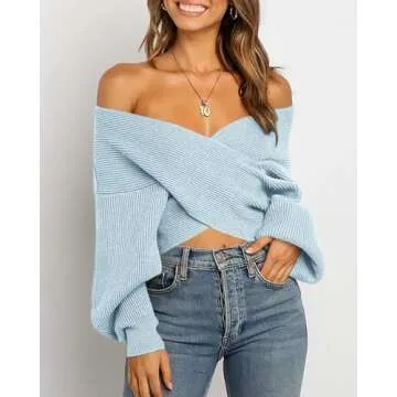 Show more Introducing the ultimate blend of style and comfort, the Crossover Long Sleeve Sweater from a renowned women's fashion brand. This exquisite piece is carefully crafted from a soft polyester and nylon blend fabric, ensuring a luxurious feel against your skin while keeping you warm during chilly days. The unique crossover front design not only flatters your figure but also offers versatility, allowing you to wear it off one shoulder for a more relaxed vibe or as a classic V-neck for a polished look.