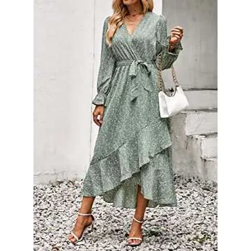 Show more Step into a world of elegance with the BTFBM Women Long Sleeve Dresses, specially designed to make you the center of attention this season. Crafted with precision, this dress features a cross V neck that beautifully frames your neckline and clavicle, while the delightful long lantern sleeves with ruffle cuffs add a playful touch to your look. Available in a variety of sizes, from S (US 4-6) to XXL (US 20), this floral high waist dress is ideal for spring, summer, and fall gatherings. The combination of soft, breathable fabric and a flowy A-line silhouette ensures that not only do you look great, but you feel comfortable too.