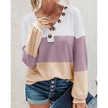 BTFBM Women Long Sleeve Shirts - Lightweight Waffle Knit Pullover with Deco Buttons for 2024 Fall Fashion