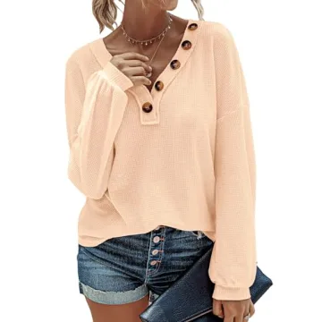 Show more Introducing the BTFBM Women Long Sleeve Shirts, your go-to companion for fall fashion in 2025! This versatile and stylish blouse is designed for modern women who value both comfort and aesthetics. Crafted from high-quality waffle knit fabric, it promises a soft and cozy feel, perfect for leisurely days or casual outings. The elegant V-neckline features decorative buttons, adding a touch of sophistication to your everyday look.