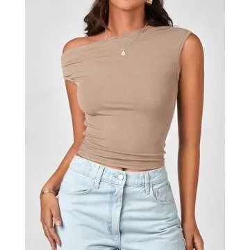 Show more Introducing the BTFBM Women Off The Shoulder Tops, the ultimate summer staple that fuses elegance with comfort! Made from a high-quality stretchy ribbed knit fabric, this chic crop top is designed to ensure you look and feel fabulous all day long. Its lightweight feel makes it perfect for those sweltering summer days, while the stylish slim fit beautifully highlights your figure without being overly constricting. Expertly crafted to offer versatility, you can wear this top on or off the shoulder, providing ample opportunity to showcase your unique style. With a unique asymmetrical boat neck and side ruched detail, this top not only enhances your waistline but also adds a fashion-forward touch to your outfit.