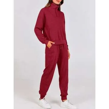 BTFBM Women's 2 Piece Tracksuit Fall Outfits 2025 Long Sleeve Half Zip Sweatshirt Sweatpants Lounge Set Sweatsuits(Solid Wine Red,Small)