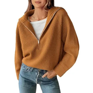BTFBM Women’s Casual Long Sleeve Half Zip Pullover Sweater - Soft & Stylish!