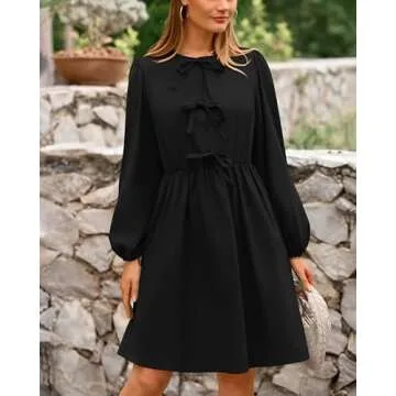 BTFBM Women's Casual Short Dress 2025 Bow Tie Front Puff Long Sleeve A Line