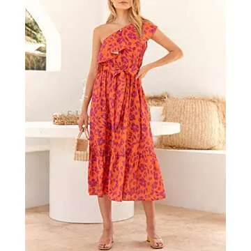 Show moreIntroducing the BTFBM Women's One Shoulder Maxi Dress, the epitome of style and comfort for this summer! This beautifully crafted dress showcases a stunning asymmetrical neckline that immediately draws the eye, while the flirty layered ruffle detail adds a touch of elegance and playfulness. Made from high-quality materials, this lightweight dress gently embraces your figure, ensuring you stay cool and stylish during those warm, sunny days. The combination of the vibrant floral print in shades of orange and purple creates a visual feast that is perfect for making a statement at any occasion.
