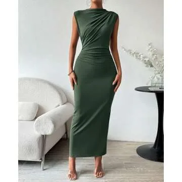 The dress features a high neck and sleeveless cut that showcases your shoulders gracefully, while the flattering bodycon fit hugs your curves, giving you a charming silhouette. With ruched detailing on the shoulders and sides, it adds depth and interest to your outfit. The back slit enhances movement and lends an air of sophistication, ensuring you stand out whether you're at a cocktail party or a wedding.