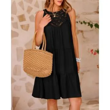 BTFBM Women's Summer Hollow Out Halter Dresses Casual Sleeveless A-Line Tiered Swing Sundress Beach Vacation Mini Dress(Solid Black, Small)