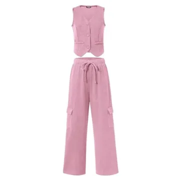 Step into the summer season with style and confidence in the BTFBM Women's Summer Suiting 2024 2 Piece Outfits Rib Knit Button Down Sleeveless Crop Vest Wide Leg Pants Matching Sets. This chic ensemble is crafted from a soft and skin-friendly ribbed knit fabric, ensuring comfort without sacrificing elegance. Its stretchy material provides a figure-hugging fit that accentuates your silhouette while allowing you the freedom to move effortlessly. The set is composed of a stylish sleeveless crop...