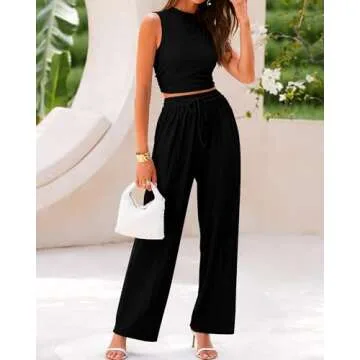 - Stylish Design: Includes a sleeveless cropped top and wide-leg pants, perfect for mixing and matching.