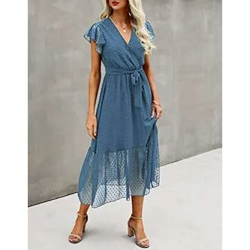 Step into summer with the BTFBM Women Summer Bohemian Floral Casual Wrap V Neck Ruffle Cap Sleeveless Belt A-Line Pleated Hem Swing Midi Sun Dress, a harmonious blend of style and comfort tailored for the modern woman. Crafted from lightweight and soft polyester, this dress ensures you stay cool and breathable on those hot summer days. The high-quality fabric ingeniously avoids any see-through issues, allowing you to wear this striking dress with confidence. With unique design elements that marry chic aesthetics...