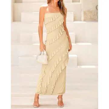 BTFBM Women Summer Elegant Strapless Midi Ruched Bodycon Dress Solid Color Stretch Mesh Slim Party Cocktail Dresses