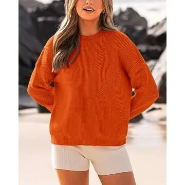 BTFBM Womens Casual Long Sleeve Sweaters Crew Neck Oversized Ribbed Knit Pullover Sweater 2025 Fall Winter Jumper Tops(Solid Orange, Large)