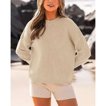 BTFBM Womens Casual Long Sleeve Sweaters Crew Neck Oversized Ribbed Knit Pullover Sweater 2025 Fall Winter Jumper Tops(Solid Apricot, Medium)