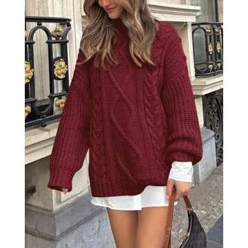 BTFBM Womens Fall Fashion 2023 Cable Knit Sweater Long Sleeve Button Shoulder Pullover Chunky Christmas Sweaters(Solid Wine Red, Medium)