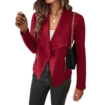 Its lightweight nature ensures you can wear it comfortably throughout the fall and winter, whether you're heading to the office or out for a night on the town. The jacker is equipped with side zipper pockets which provide secure storage for your essentials while adding an edgy touch to the look. Available in an array of fashionable colors including classic black, striking red, and earthy camel, this jacket is perfect for various outfits from casual to dressy.