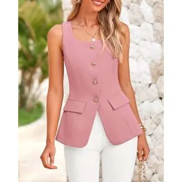 BTFBM Womens Sleeveless Suit Vests Dressy Casual Square Neck Business Work Waistcoat Summer Button Up Blazer Vest Tops(Pink, X-Large)