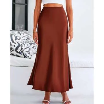 BTFBM Womens Summer Fall Skirt 2025 Silk Elegant High Waist Cocktail Party Wedding Mermaid Satin Maxi Skirts(Solid Brown, X-Large)