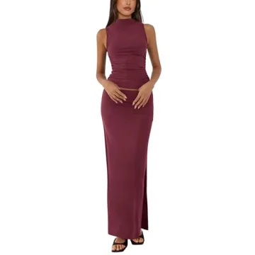 Show more Step into the spotlight with the BTFBM Womens Two Piece Outfits Summer Lightweight 2025 Mock Neck Sleeveless Knit Tops Maxi Skirt Set, a perfect blend of style, comfort, and versatility that transforms any appearance into an elegant affair. Crafted from high-quality ribbed knit fabric, this outfit embraces your shape while maintaining an airy, breathable feel. The sleeveless design features a mock neck that adds a touch of sophistication, creating a chic aesthetic that's just as suitable for a casual outing as it is for formal events.