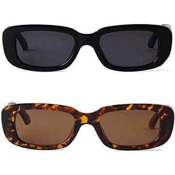 BTHS Rectangle Sunglasses for Women Retro Driving Glasses 90’s Vintage Fashion Narrow Square Frame UV400 Protection (2pc)