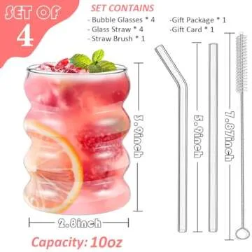 Show moreIntroducing the exquisite Btrquedo Wave Shape Bubble Glasses Drinking Set, designed to elevate your drinking experience while adding a touch of elegance to any table setting. Crafted from high borosilicate glass, these creative glassware sets feature a unique bubble shape that not only looks stunning but also ensures a comfortable grip. With a capacity of 10 ounces, these glasses are perfect for a variety of hot or cold beverages, from refreshing iced coffee to delightful cocktails. The included glass straws and cleaning brush make it an all-in-one solution for beverage enthusiasts. This set is beautifully packaged and comes with a gift card, making it the ideal present for loved ones.