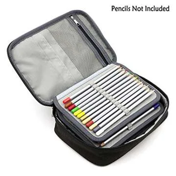 BTSKY Big Capacity Zipper Stationery Bag with Pattern-Multi-functional Stationery Organizer Pouch 36 Large Stretchy Slots for 72 Colored Pencils Black