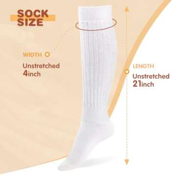 Show moreIntroducing the ultimate blend of comfort and style with our slouchy socks! These fabulous socks, designed to deliver unparalleled wearability, boast a generous length of approximately 40cm (15.7 inches) from the top to the heel. They can elegantly slouch and scrunch around the ankles or be pulled up all the way for a chic knee-high look. Crafted with versatility in mind, these socks come with ample stretch to enhance comfort levels significantly, ensuring they never bind when worn. The reinforced heels and toes along with a double-thick sole make these socks a year-round favorite, perfect for every season.