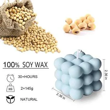 Show more Transform your space with our delightful cube-shaped candles, available in soothing blue and elegant white. These trendy candles, measuring 2.36 inches in width, length, and height, weigh just 55 oz, making them as fun and interactive as a Rubik's Cube! Perfectly designed for multi-use, you can alternate between the two colors and set them up in various places around your home or office, bringing a playful yet sophisticated vibe to any setting. Crafted with care, these candles are not only aesthetically pleasing but also provide a delightful sensory experience.