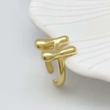 Bubble Initial Ring For Women ,Dainty Balloon Letter Rings 14k Gold Plated Open Adjustable Unique Gift Jewelry (Gold letter N)