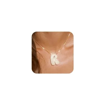 Bubble Letter Necklace Gold Balloon Initial Letter Pendant Necklace No Tarnish Cubic Zirconia Trendy Fashion Personalized Name Alphabet Necklace Jewelry For Women