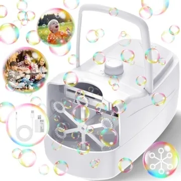 Show moreDiscover the magic and joy of endless bubbles with the Sizonjoy Bubble Machine! Built with childhood wonder in mind, this high-output bubble blower is crafted from durable and safe ABS thermoplastic polymer. It holds official CPC Toy Safety Certification, ensuring safety for kids, toddlers, pets, and adults alike. This incredible gadget is designed to generate over 18,000 big bubbles per minute using 6 spinning wands, offering two adjustable speed levels powered by a super built-in motor. Whether you're setting up for a birthday party, a wedding, or a casual backyard playdate, the Sizonjoy Bubble Machine offers 30+ minutes of continuous bubble fun for uninterrupted enjoyment.