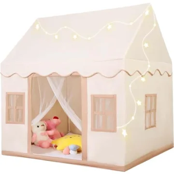 Show moreIntroducing the enchanting Bubplay Large Play Tent, a delightful haven designed to ignite your child's imagination and creativity! Measuring an impressive 47x40x52 inches, this lovely playhouse tent easily accommodates 3 to 4 kids simultaneously, making it perfect for playdates and cozy indoor adventures. Crafted from premium 100% natural cotton canvas, this tent is not only durable and fade-resistant but also machine washable, ensuring easy maintenance for busy parents. Whether you're hosting a play party or looking for a peaceful retreat, this tent provides the ideal backdrop for countless magical moments.