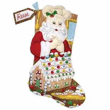 Bring an enchanting touch to your holiday season with the Bucilla Felt Applique 18" Stocking Making Kit in the delightful gingerbread Christmas theme! This exquisite 18-inch felt stocking kit is not just an ordinary holiday decoration, but an extraordinary embroidery project that allows you to create a hand-stitched heirloom, perfect for filling with your favorite stocking stuffers. The beautiful and sweet design showcases Santa joyfully decorating a gingerbread house, instantly adding a...