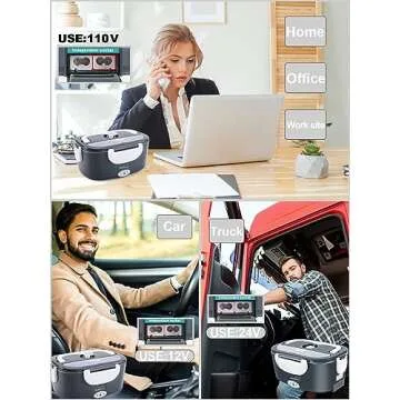 Buddew Electric Lunch Box 80W Food Heater for Adults, 12/24/110V Portable Lunch Warmer Upgraded Heated Lunch Box for Car/Truck/Office with SS Fork&Spoon and Insulated Carry Bag (White)