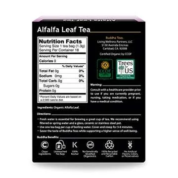 Buddha Teas Organic Alfalfa Leaf Tea - OU Kosher, USDA Organic, CCOF Organic, 18 Bleach-Free Tea Bag