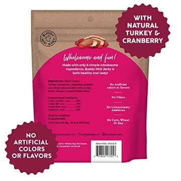 BUDDY BISCUITS Mini Jerky Treats – Natural Turkey & Cranberry, 4oz Made in USA