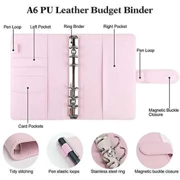 Budget Binder A6 with 12pcs Binder Pockets, 12PCS Expense Budget Sheets, Sticker Labels, 6 Ring Budget Binder Money Saving Cash Envelopes System (Pink)