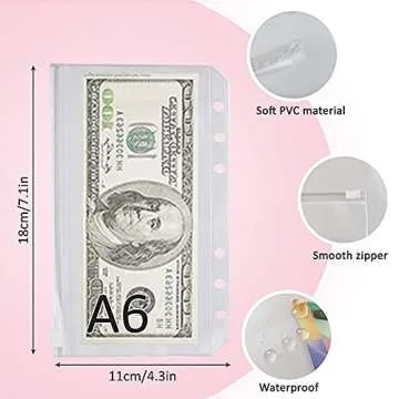 Show moreIntroducing the ultimate solution for your financial organization needs: the Budget Binder With Zipper Envelopes. This attractive pink A6 pockets planner not only embodies style but is also designed with functionality in mind. With its transparent binding bag, you can easily view your cash, cards, and essential documents at a glance. The high-quality PU leather exterior and durable zipper binding bag made from anti-tear, waterproof PVC ensure longevity and protection for your contents, making it perfect for on-the-go budgeting—whether you’re at school, in the office, or traveling.