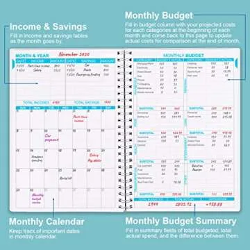 - Organized Monthly Goals: 12 months of categorized planning to track spending habits.
