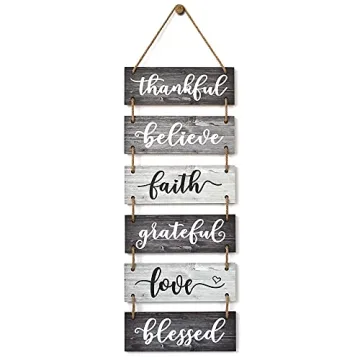Show moreElevate your home decor with the Buecasa Family Wall Decor Sign, a stunning collection of six rustic wooden hanging plaques that beautifully blend farmhouse charm with inspirational sentiments. Crafted from distressed and aged grain wood, these plaques radiate warmth and positivity, making them the perfect addition to any living space. Each plaque features uniquely selected positive words that evoke feelings of love and joy, encouraging you to embrace the little things in life. Whether hung in the living room, bedroom, or hallway, these captivating pieces will surely draw the eye and hearts of all who enter.