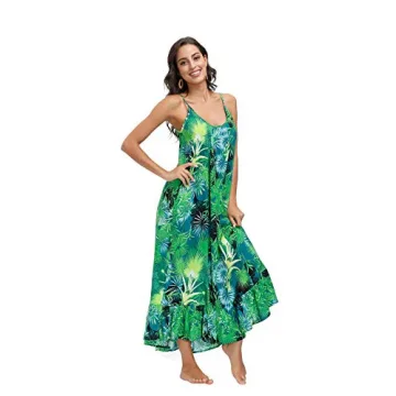 Show more Introducing the BUENOS NINOS Women's V Neck Floral Wide Leg Pants Boho Printed Adjustable Spaghetti Strappy Long Jumpsuit with Pockets, the ultimate blend of style, comfort, and functionality that’s perfect for every occasion. This exquisite jungle green dress is meticulously designed with soft, breathable rayon fabric that ensures you stay cool and comfortable, even in the hottest temperatures. The wide-leg design and adjustable spaghetti straps provide a relaxed fit that flatters all body types, making it your go-to dress for both lounging at home and stepping out in style.