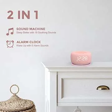 Buffbee Sound Machine & Alarm Clock 2-in-1-0-100% Display Dimmer, Under Light, Sleep Timer, Precise 30-Level Volume Control White Noise Machine