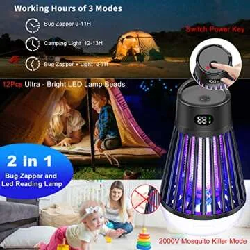 Bug Zapper Outdoor and Indoor - Rechargeable Mosquito and Fly Killer,USB LED Light Trap Portable Cordless Electric Mosquito Zappers Killer Lamp, Insect Killer for Home Backyard Camping Patio - Black