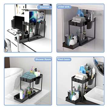 Bugdaben Under Sink Organizers - 2 Tier Slider with Hooks and Cup