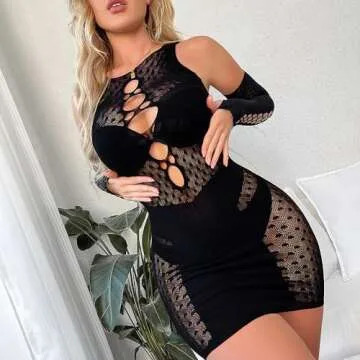 Buitifo Sexy Lingerie for Women Dress One Piece Babydoll Sleepwear Party Clubwear with Oversleeve (Black,One Size)