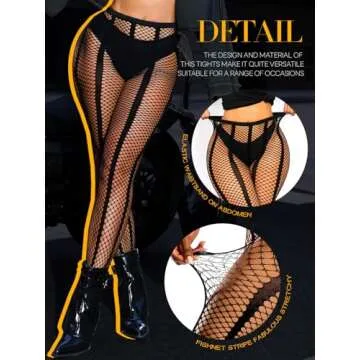 Show moreIntroducing the ultimate in feminine allure, our sexy tights are designed to elevate any outfit while providing unmatched comfort. These flirty tights feature a unique striped pattern and sexy fishing net design, perfect for those who embrace their individuality and style. Made by a reputable brand known for their commitment to quality, these tights are not just a simple accessory; they are a staple for the modern woman. With an elastic waistband, they offer a comfortable fit that hugs your body without constricting, allowing you to wear them all day without discomfort.