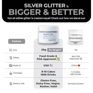 When compared to other brands on the market, our edible glitter stands out not only in quality but also in the amount you receive. Many competitors offer smaller quantities at a higher price point with fewer color choices. Our glitter ensures you have an abundant supply of a premium product that retains its shimmer and sparkle without clumping, remaining visually stunning in drinks and on desserts. Plus, our locally produced, food-safe ingredients ensure that you know exactly what you’re using in your culinary masterpieces, building trust with every sprinkle!