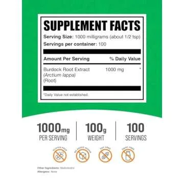 BulkSupplements.com Burdock Root Extract Powder - Burdock Root Supplement, Burdock Root Powder - Herbal Supplement, Gluten Free, 1000mg per Serving, 100g (3.5 oz) (Pack of 1)