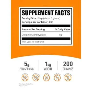 BulkSupplements.com Creatine Monohydrate Powder - Creatine Supplement, Micronized Creatine 1kg, Creatine Powder - Unflavored & Gluten Free, 5g (5000mg) per Servings, 1kg (2.2 lbs) (Pack of 1)